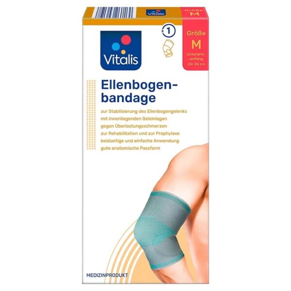 آرنج بند پددار طبی کشی ویتالیس آلمانی از محصولات با کیفیت و با قیمت اقتصادی و مناسب برند آلمانی ویتالیس Vitalis زیر مجموعه کمپانی بزرگ آلدی (ALDI) آلمان است که به صورت اختصاصی کالای پزشکی و مکمل های ورزشی و سلامتی و زیبایی تولید می کند. این محصول با فشرده سازی و پشتیبانی از مفاصل دست باعث کاهش سوزش و درد ناشی از تحریک ،تورم، تروما و التهاب های مختلف ورزشی ، فعالیت کاری یا بیماری های روماتیسمی میشود.