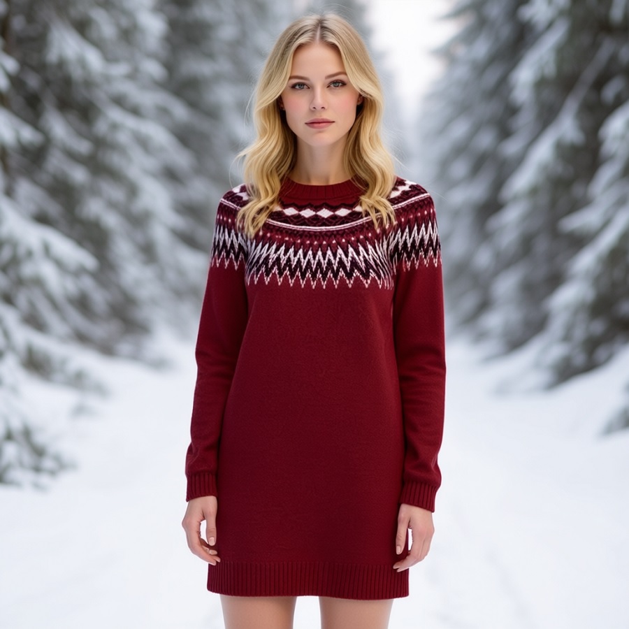 قد لباس بین ۸۰ تا ۸۵ سانتیمتر است و پوششی متعادل بین بلوز و بافت بلند ایجاد میکند؛ مناسب برای استفاده روزمره، محیطهای دوستانه یا دورهمیهای زمستانی.